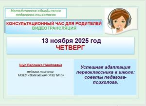 Приглашаем родителей и всех заинтересованных лиц на консультационный час «Успешная адаптация первоклассника в школе: советы психолога».